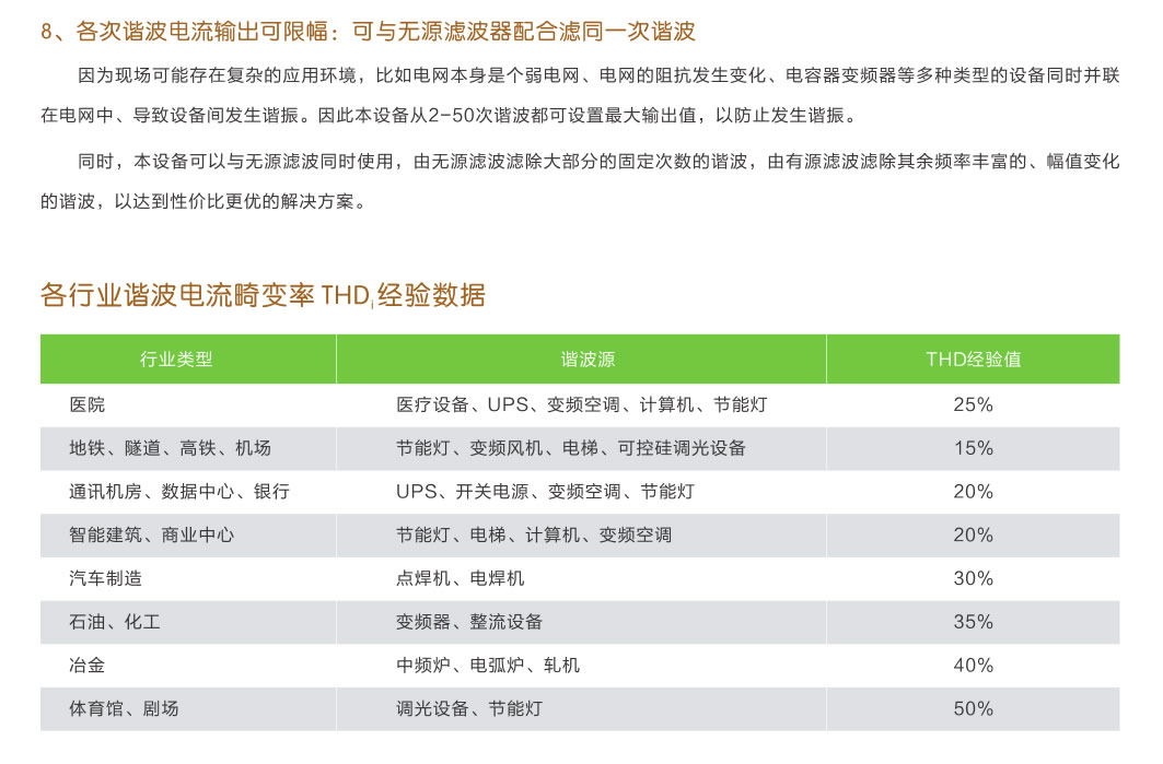 The main circuit of the complete set of active power filter device is an IGBT power converter, which adopts the detection technology of instantaneous reactive power theory to automatically track the harmonic changes of the power grid, and has a high degree of controllability and rapid response. It overcomes the shortcomings of poor filtering effect of traditional passive filtering devices, prone to resonance, and can only compensate for fixed sub-harmonics, and can play a good filtering and compensation effect on various fast transient impact loads.