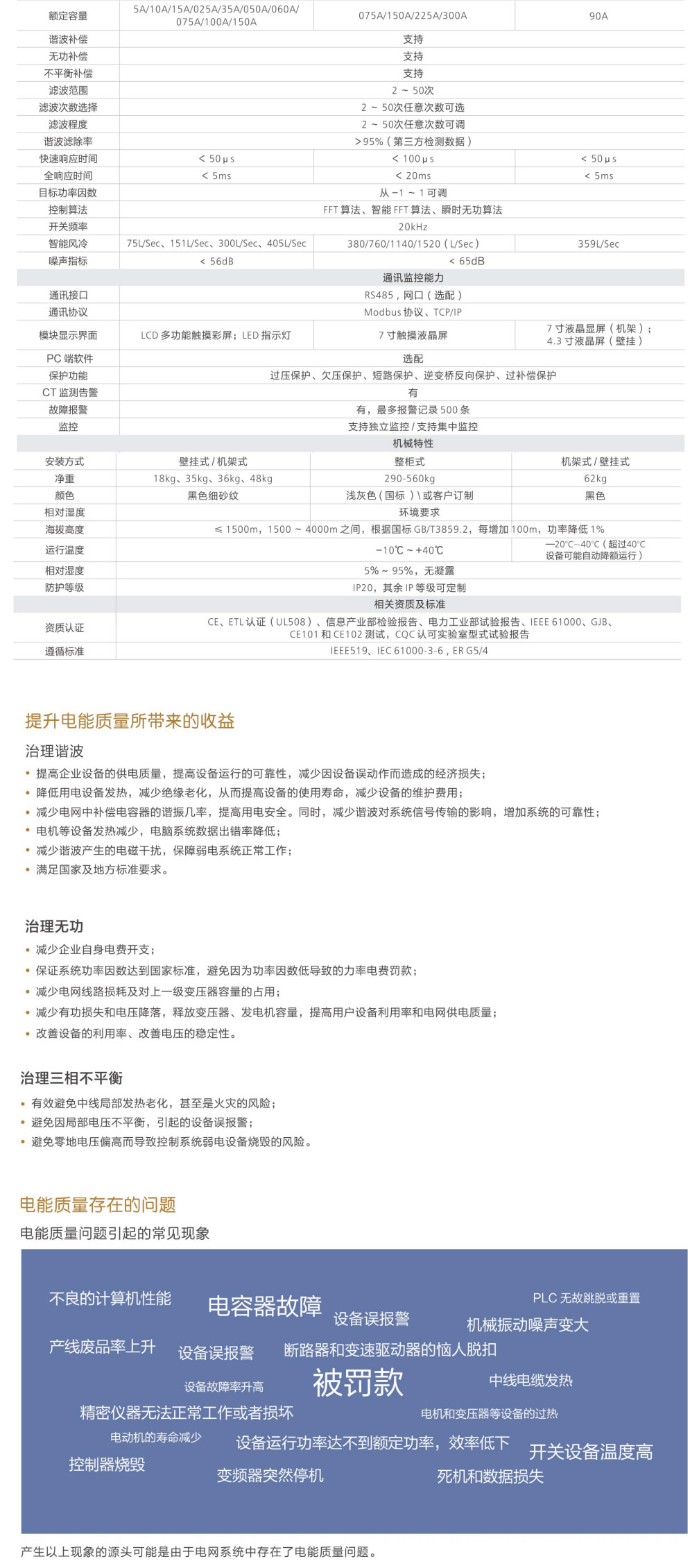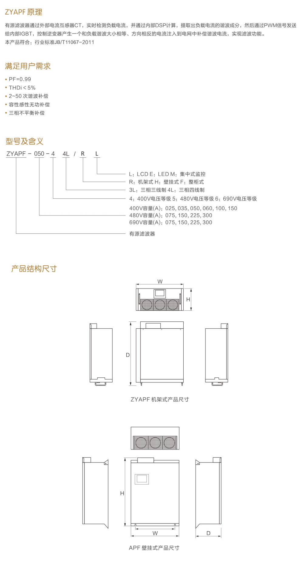 The active power filter detects the load current in real time through the external current transformer CT, extracts the harmonic component of the load current through the internal DSP calculation, and then sends the PWM signal to the internal IGBT to control the inverter to generate a current with the same size and opposite direction as the load harmonic, and injects it into the power grid to compensate the harmonic current, so as to realize the filtering function.
