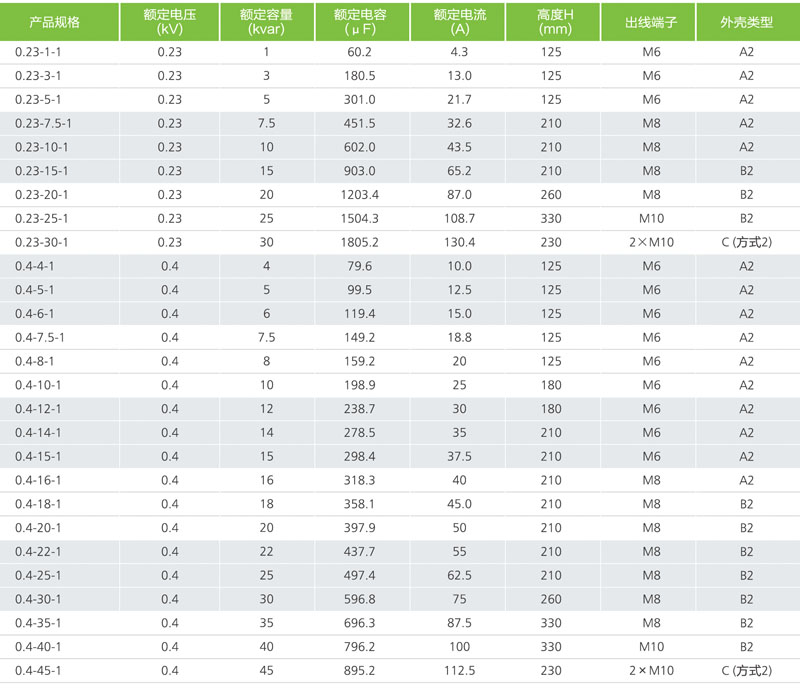 額定容量:0.4-0.69kv的1-60kvar,其他電壓等級的容量另定。