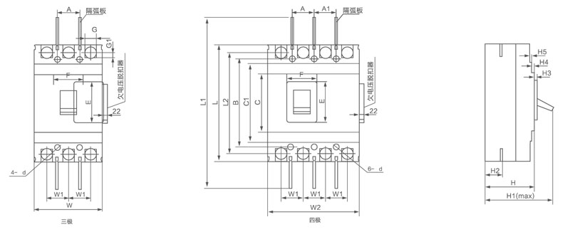 該斷路器具有體積小、分斷高、飛弧短(或無(wú)飛弧)等特點(diǎn),是用戶(hù)使用的理想產(chǎn)品。斷路器垂直安裝(即豎裝),亦可水平安裝(橫裝)。