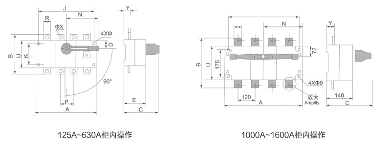 開(kāi)關(guān)正面設有標記窗口,指示觸頭的通斷狀態(tài),可根據需要提供后面觀(guān)察窗口,直接觀(guān)察觸頭的通斷狀態(tài),保證開(kāi)關(guān)操作的可靠性、安全性。手柄可直接裝在開(kāi)關(guān)上操作(簡(jiǎn)稱(chēng)柜內操作),也可通過(guò)加長(cháng)軸在配電柜門(mén)外操作(簡(jiǎn)稱(chēng)柜外操作),提供操作方便。