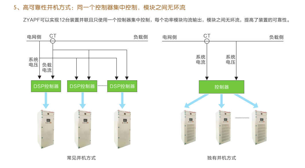 有源電力濾波成套裝置主電路為IGBT功率變換器,采用瞬時(shí)無(wú)功功率理論的檢測技術(shù),自動(dòng)跟蹤電網(wǎng)諧波變化,具有高度可控性與快速響應性?朔藗鹘y無(wú)源濾波裝置的濾波效果差,容易發(fā)生諧振、只能補償固定次諧波等缺點(diǎn),對各種快速瞬變的沖擊性負荷均能起到良好的濾波和補償效果。