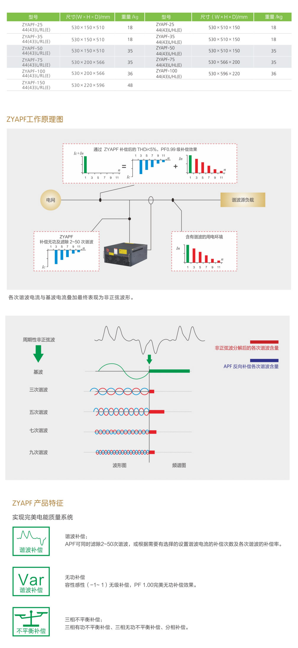 有源濾波器通過(guò)外部電流互感器CT,實(shí)時(shí)檢測負載電流,并通過(guò)內部DSP計算,提取出負載電流的諧波成分,然后通過(guò)PWM信號發(fā)送給內部IGBT,控制逆變器產(chǎn)生一個(gè)和負載諧波大小相等、方向相反的電流注入到電網(wǎng)中補償諧波電流,實(shí)現濾波功能。